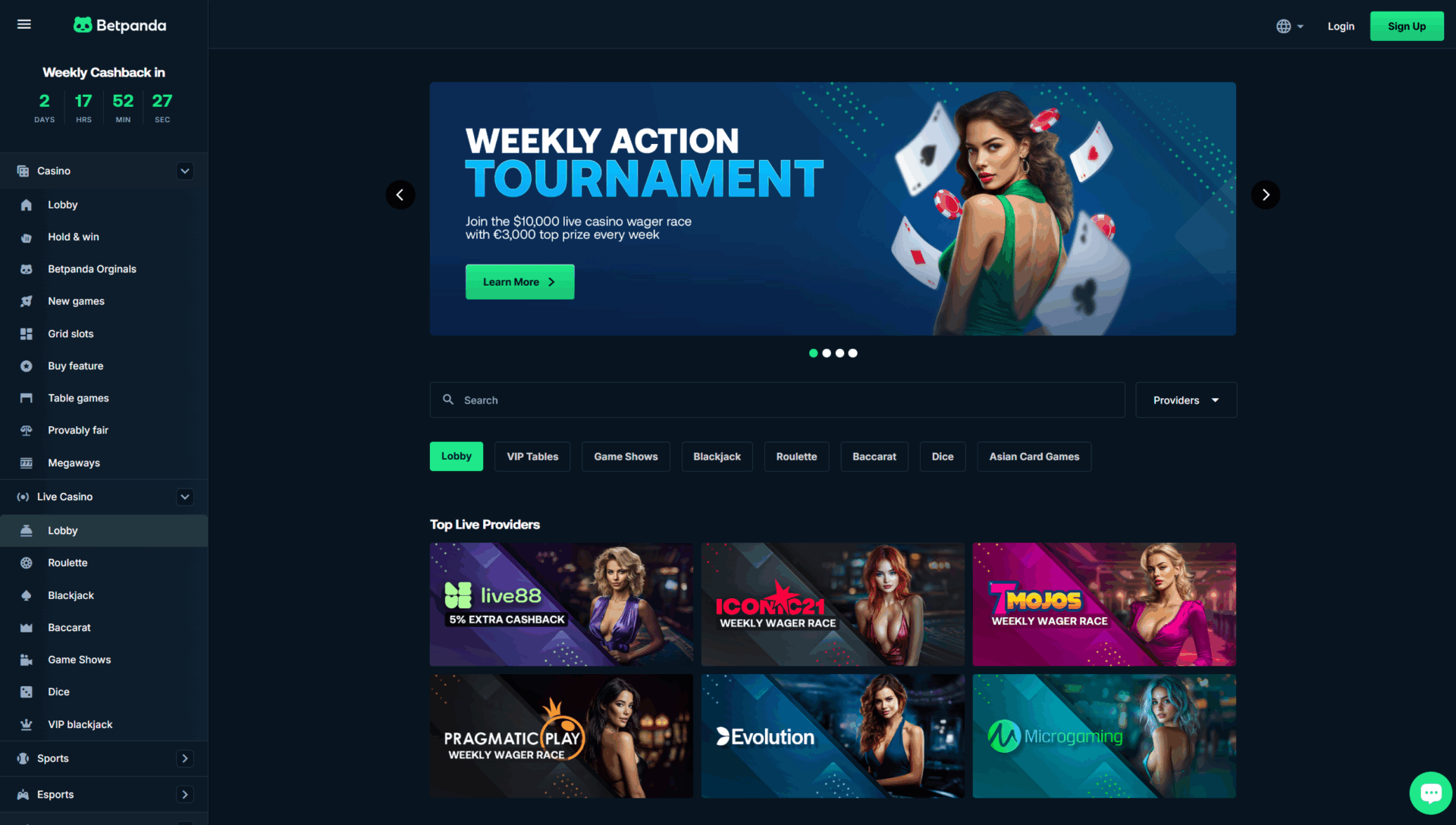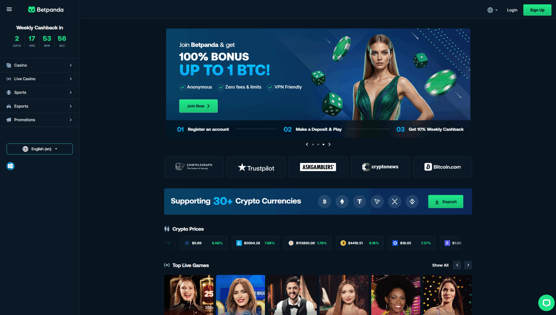 Smaller studios with niche offerings like Thunderkick and AvatarUX are also present, adding more panache and variety to BetPanda’s game library. As a result, players have access to everything from high-volatility slots and jackpot titles to immersive live dealer tables and fast-paced crash games.